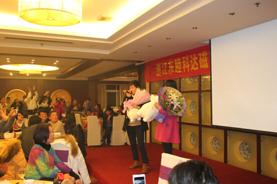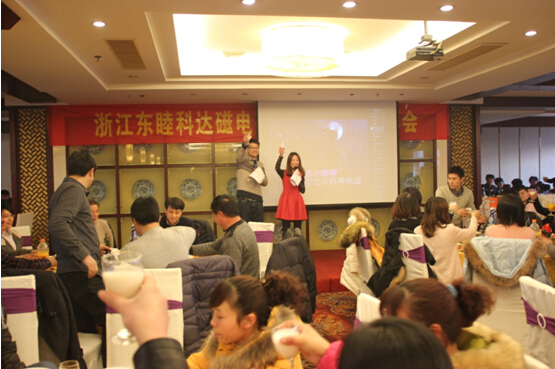 2015年2月8日,我司自加入東睦這個(gè)家庭之后的第一次新春團(tuán)拜會(huì)在麗晶大酒店火熱舉行。公司總經(jīng)理柯昕先生熱情洋溢的新春致詞中,團(tuán)拜會(huì)正式開(kāi)始,他真摯 的向辛勤工作的全體員工表示感謝,同時(shí)致以新春的祝福,尤其是向遠(yuǎn)離他鄉(xiāng)工作在生產(chǎn)一線的員工表示節(jié)日的慰問(wèn)與祝賀。在一曲充滿著斗志的《壯志雄心》中拉開(kāi)了本次團(tuán)拜會(huì)演出的序幕,各部門(mén)的才藝骨干皆準(zhǔn)備了精彩紛呈的節(jié)目,現(xiàn)場(chǎng)掌聲、歡笑聲、吶喊聲此起彼伏。晚會(huì)中間穿插的多輪抽獎(jiǎng)更是幾次將晚會(huì)推向了高潮,大家都沉浸在歡樂(lè)的海洋中。